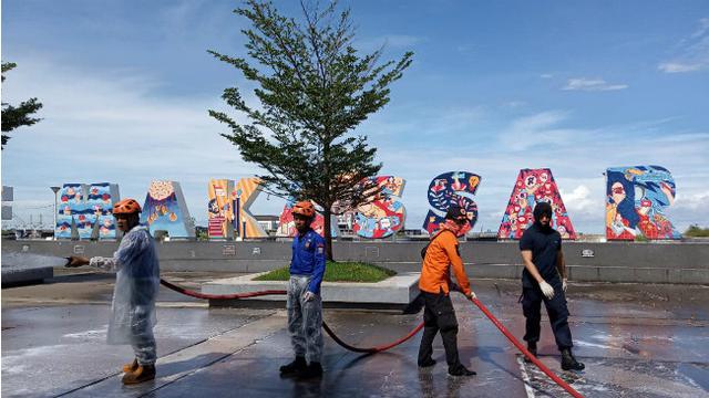 Antisipasi Covid 19 Anjungan Pantai Losari Makassar Disterilkan Dengan Detergen Regional Liputan6 Com