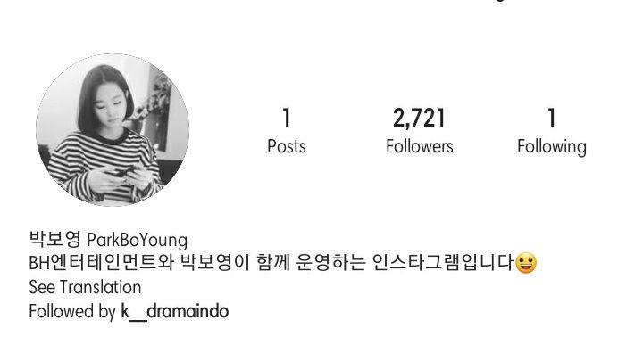 Park Bo Young Opens Official Instagram Account Check In