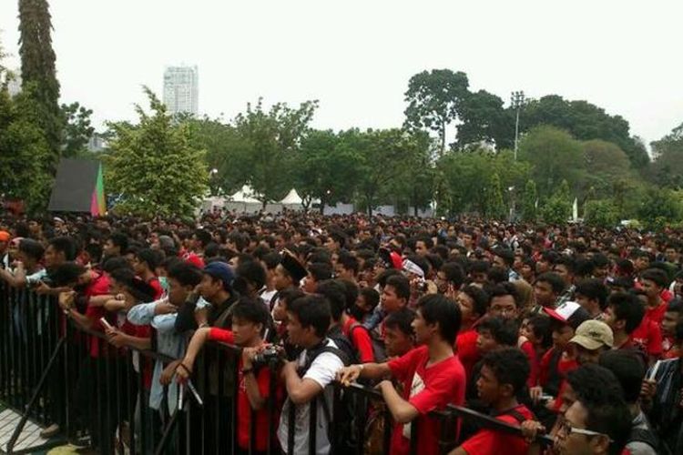 Nobar Debat Ribuan Pendukung 01 Penuhi Parkir Timur Senayan
