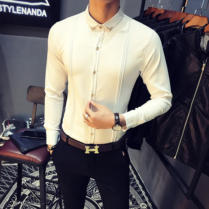 Kemeja Putih Pria Kemeja Tuksedo Pas Badan Solid Lipit Lengan Panjang Pria Kemeja Gaun Prom Sosial Kasual Gaya Inggris Untuk Pria 5xl Tuxedo Shirts Aliexpress