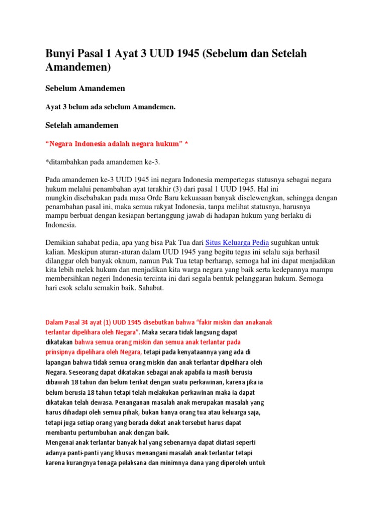 Isi Bunyi Pasal 1 Uud 1945 Komunitas Guru Pkn