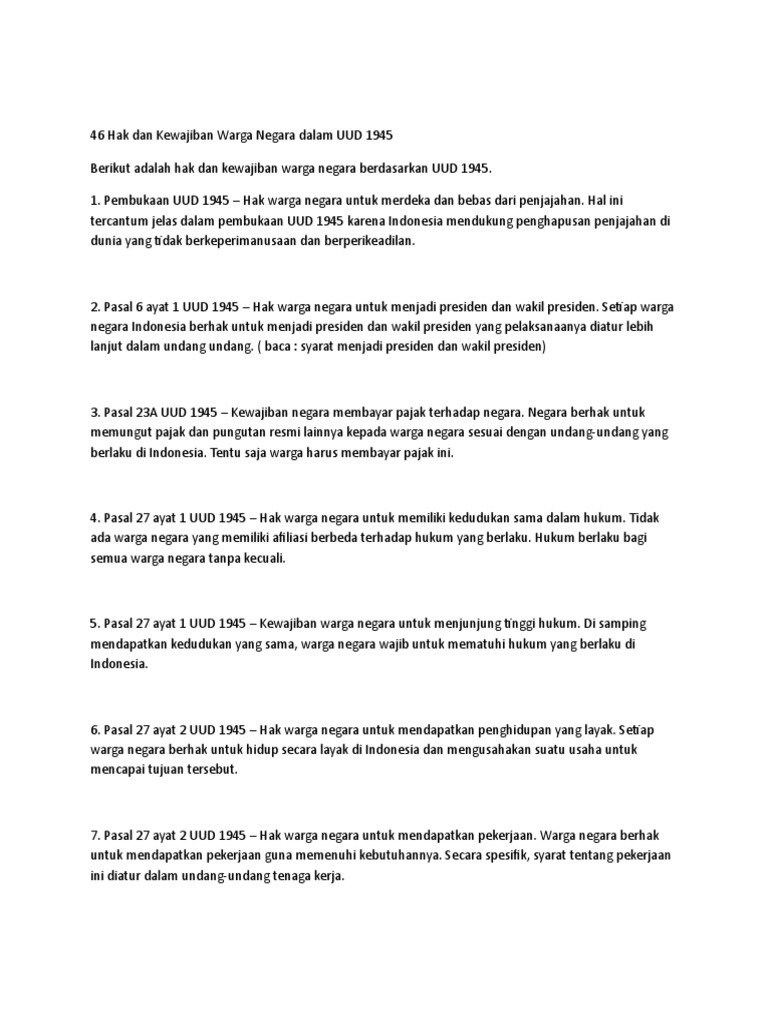 Pasal Undang Undang Dasar Negara Republik Indonesia Tahun 1945 Mengatur Tentang Hak Hak Warga Negara Indonesia