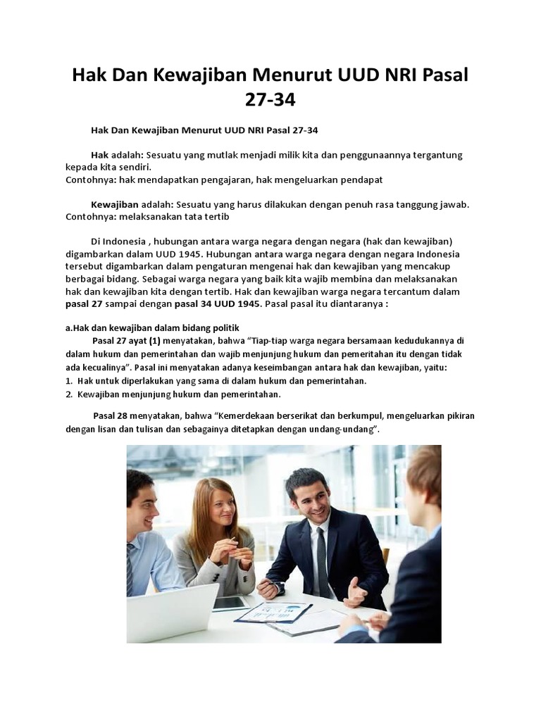 Pasal 27 Ayat 1 2 Dan 3 Uud 1945