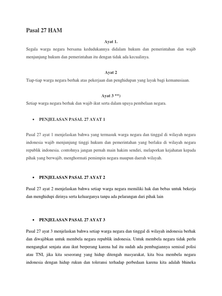 Contoh Wujud Pelaksanaan Pasal 27 Ayat 3 Uud 1945 Pdf Pasal 7a Pasal Ini Merupakan Hasil Dari Amandemen Pdf Document
