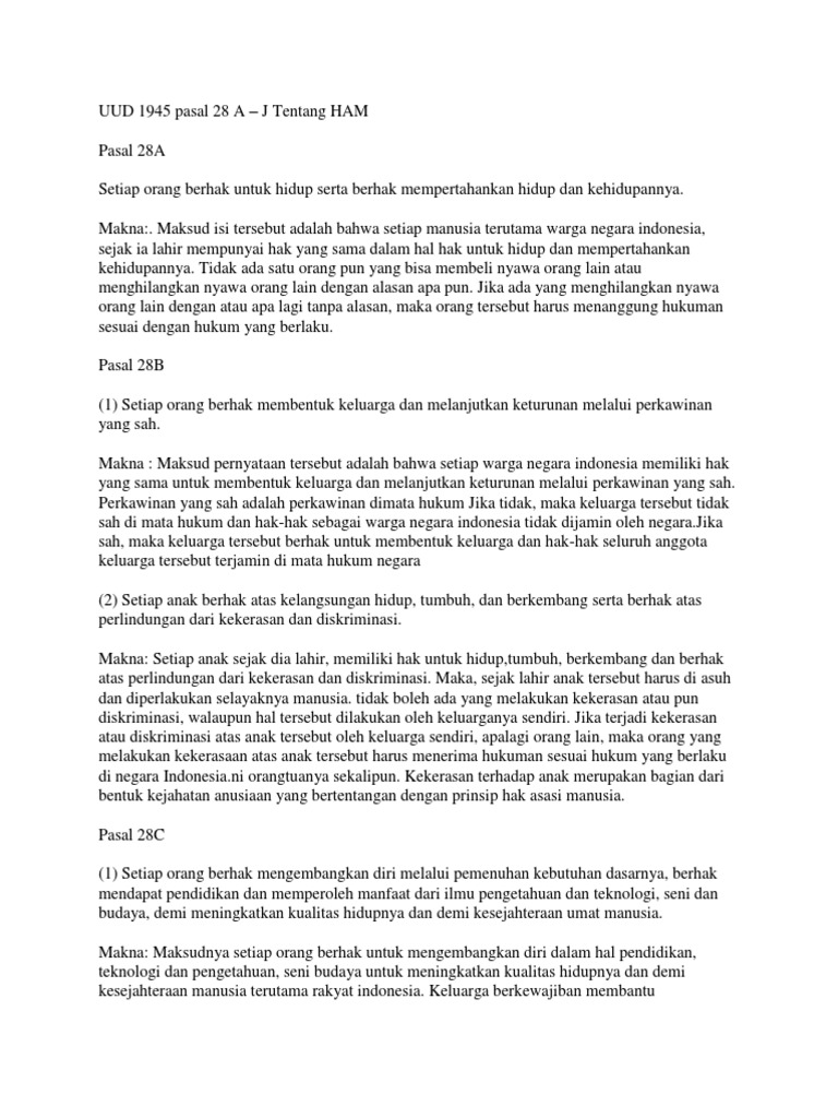 Makna Pasal 28 Uud 1945 Dalam Pelaksanaan Hak Asasi Manusia Ham Semua Halaman Kids