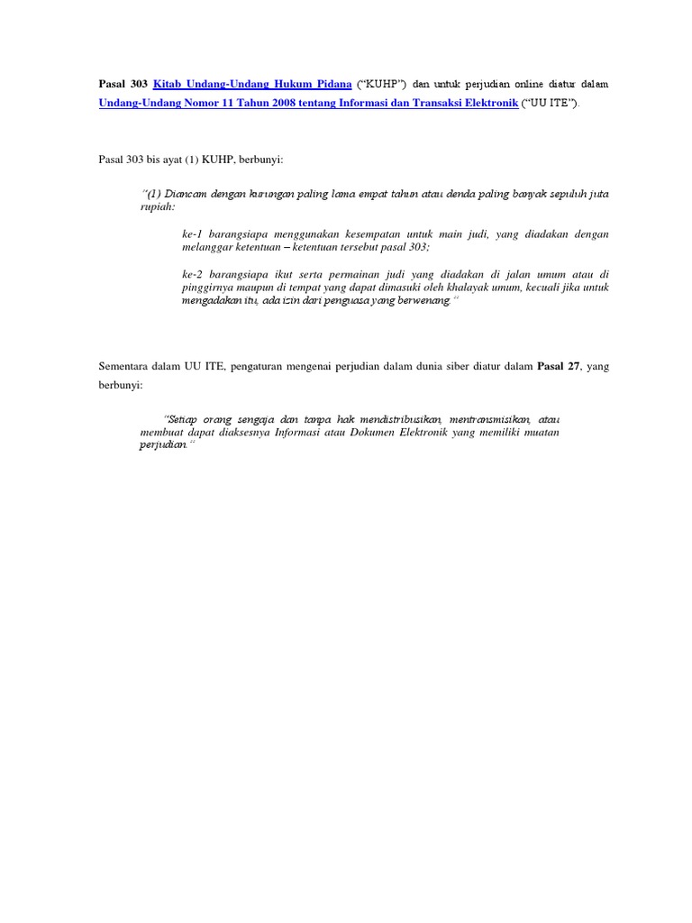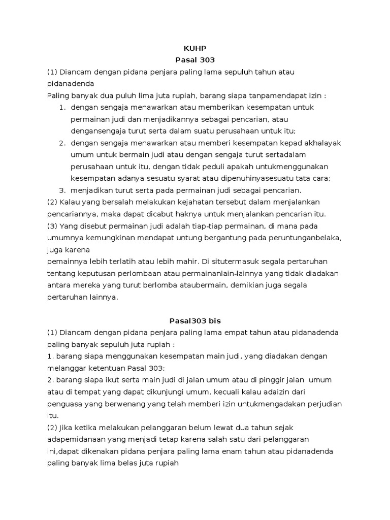 Efektivitas Pasal 303 Dan Pasal 303 Bis Kuhp Pidana Perjudian Sesuai Dengan Unsur Unsur Didalam Pdf Document