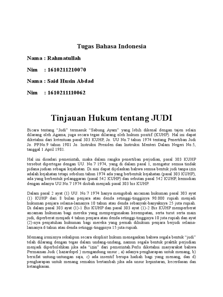 Tinjauan Hukum Tentang Judi Lhs Artikel