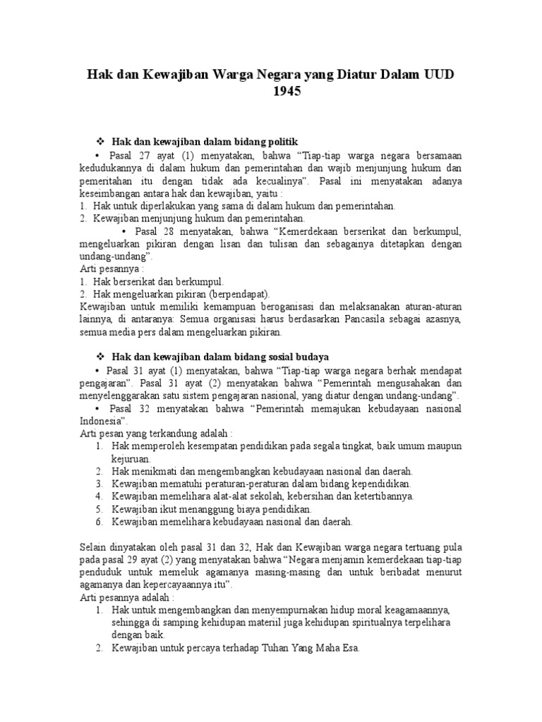 Pasal 31 Ayat 1 Dan 2 Uud 1945 Jawaban Lengkap