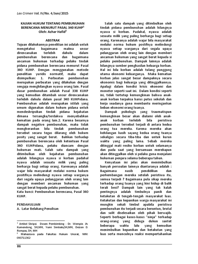 Top Pdf Kajian Hukum Tentang Pembunuhan Berencana Menurut Pasal 340 Kuhp 123dok Com