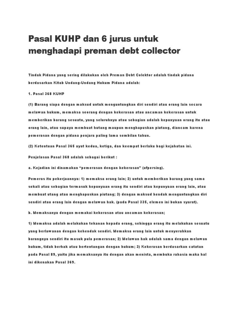 Humas Polda Jabar V Twitter Hukum Debt Collector Dan Leasing Pada 06 Januari 2020 Mahkamah Agung Memutuskan Bahwa Debt Collector Dan Leasing Diancam Kena 3 Pasal Berlapis Yaitu Kuhp Pasal 368 Tentang