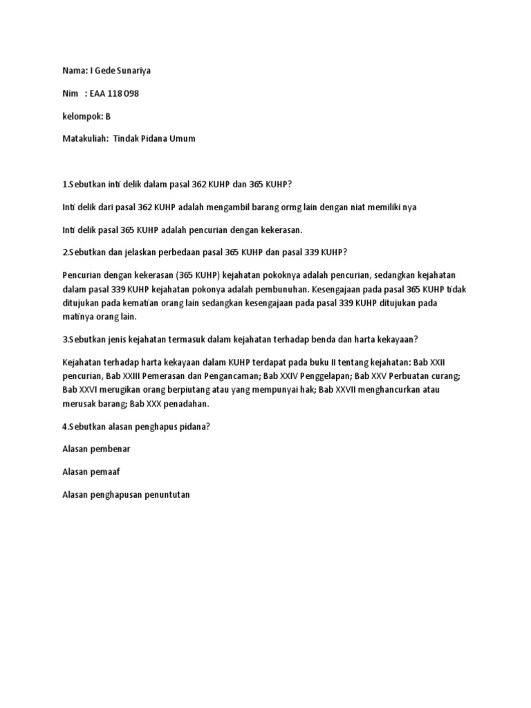Pasal 365 Kuhp Arsip Madu Tv Tulungagung