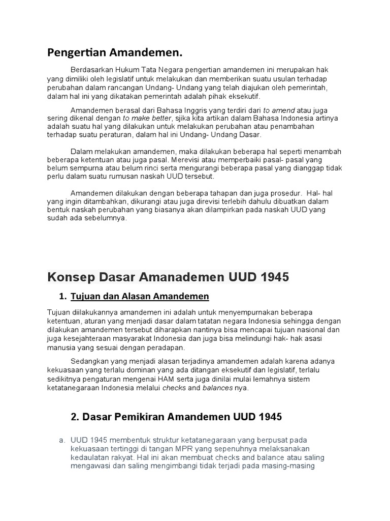 Amandemen Uud 1945 Tujuan Dan Perubahannya