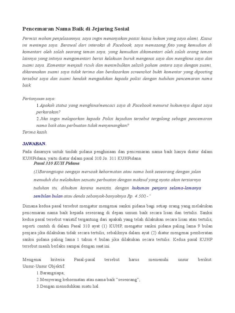 Pasal Pencemaran Nama Baik