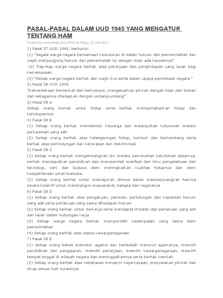 Pasal Pasal Dalam Uud 1945 Yang Mengatur Tentang Ham Komunitas Guru Pkn