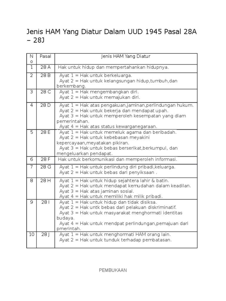 Jenis Jenis Ham Yang Diatur Dalam Uud 1945 Pasal 28a 28j Semua Ada