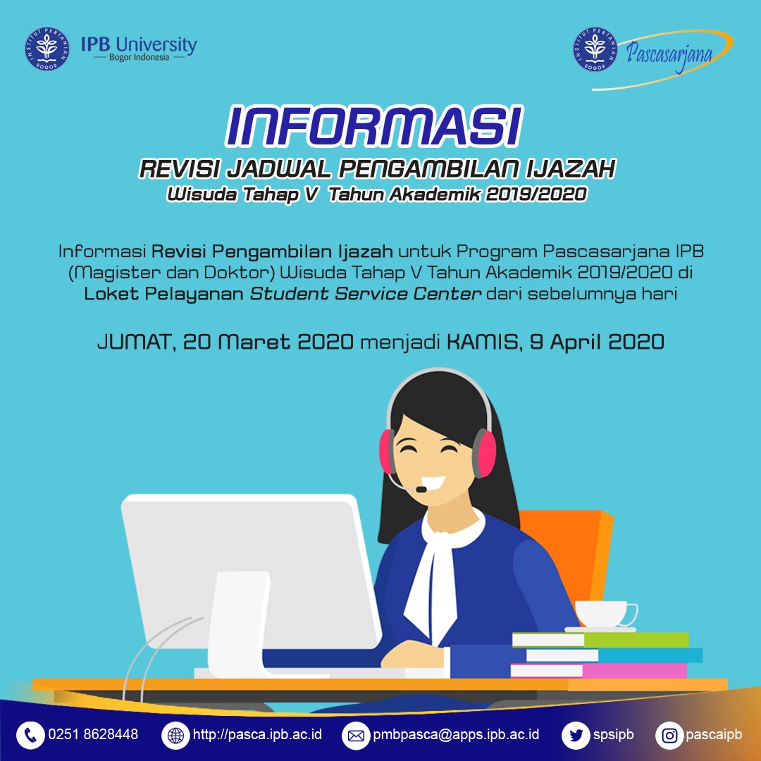 Sekolah Pascasarjana Ipb در تÙÛÛØªØ± Informasi Revisi Jadwal Pengambilan Ijazah Wisuda Tahap V Tahun Akademik 2019 2020 Untuk Program Pascasarjana Ipb Magister Dan Doktor Pascasarjana Ipb Ramah Berkualitas Https T Co Bsil9syklx