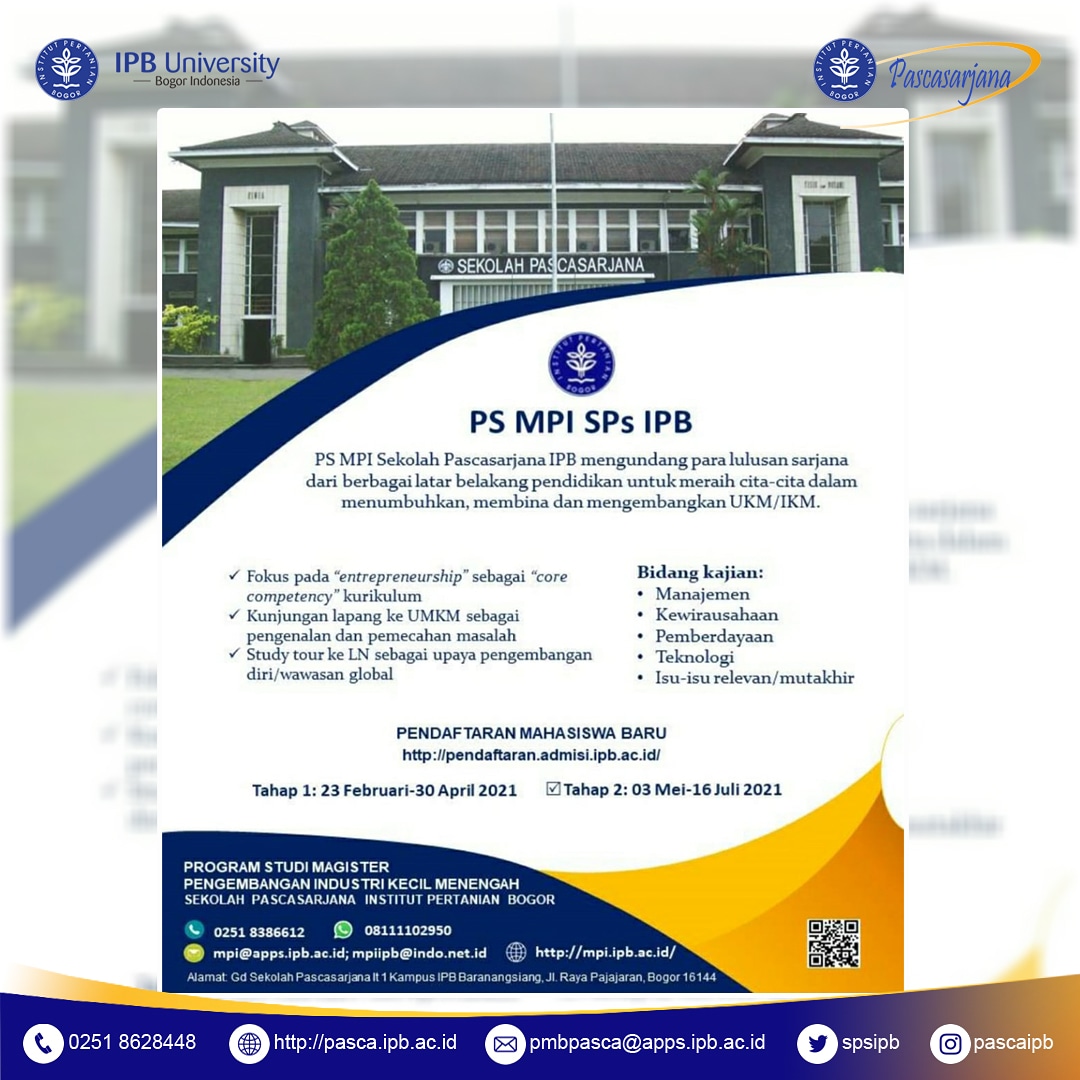 Sekolah Pascasarjana Ipb On Twitter Informasi Program Studi Magister Pengembangan Industri Kecil Menengah Sekolah Pascasarjana Ipb Cek Disini Ya Informasi Tata Cara Dan Persyaratan Pendaftaran Bisa Dilihat Di Website Https T Co Vpp108jrud