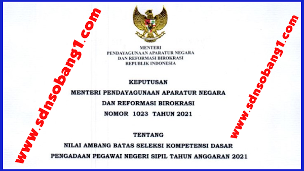 Passing Grade Skd Cpns Tahun 2021 Kepmenpanrb Nomor 1023 Tahun 2021 Sdn Sobang 1