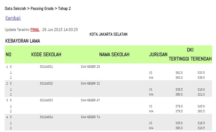 Ppdb Dki Sma Passing Grade Tahap 2 Jakarta Selatan