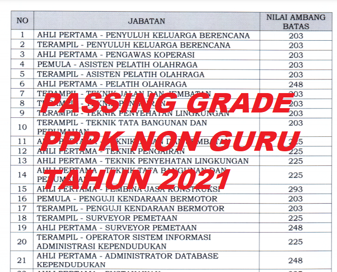 Daftar Passing Grade Pppk Guru Dan Non Guru 2021
