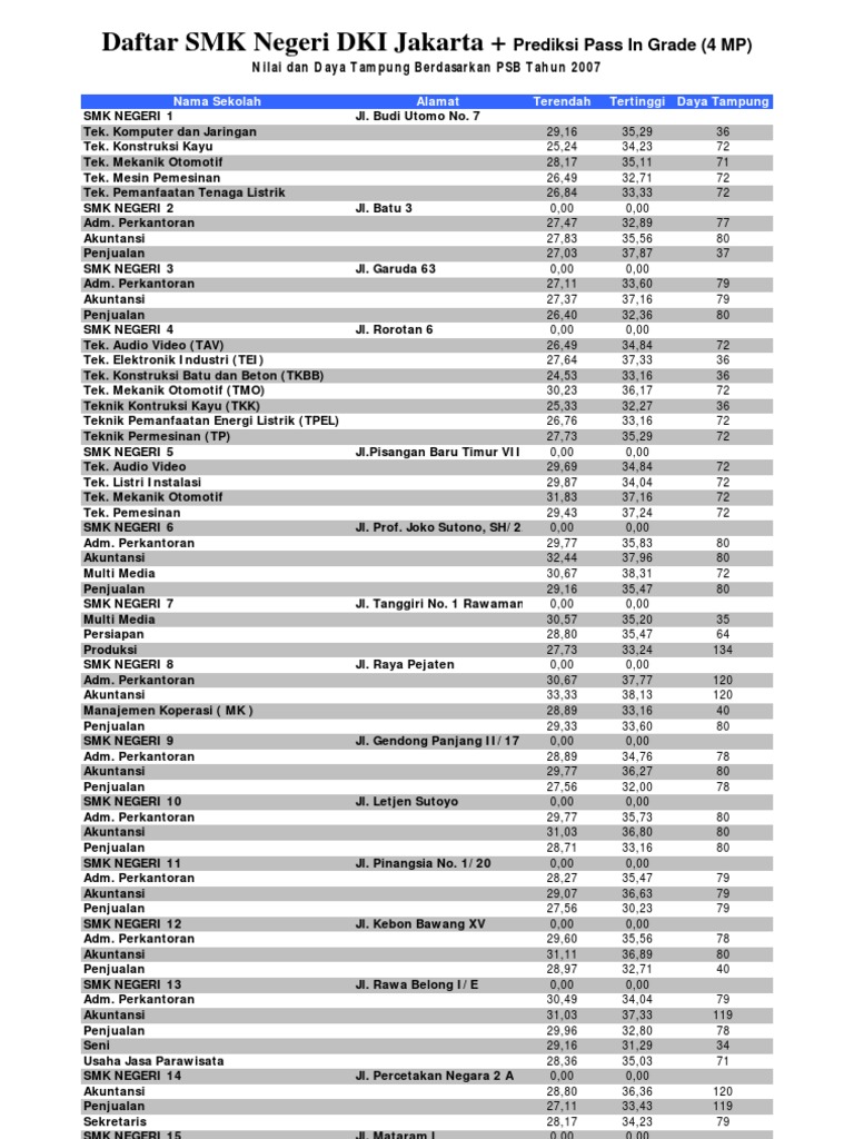 Passing Grade Smk Se Jakarta Citra Indonesia