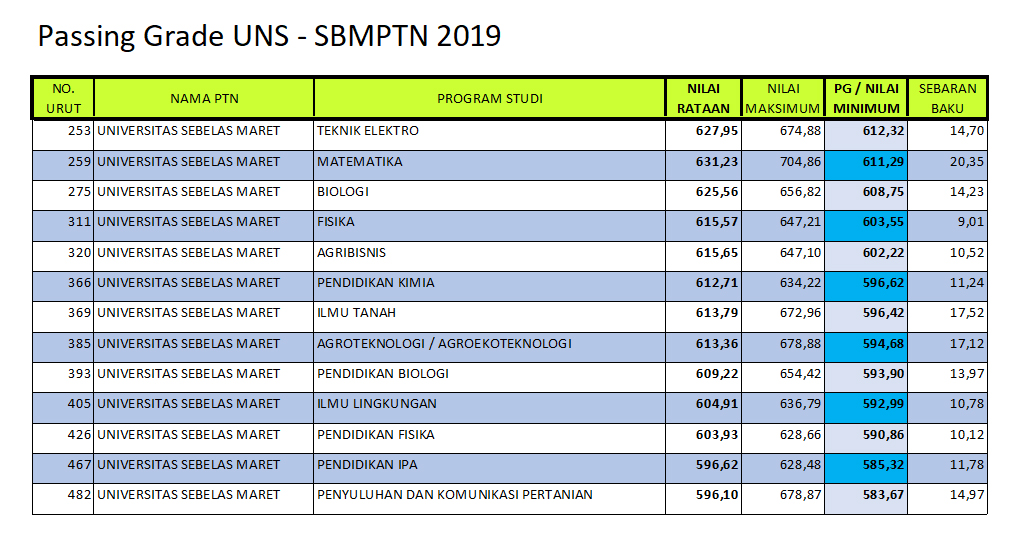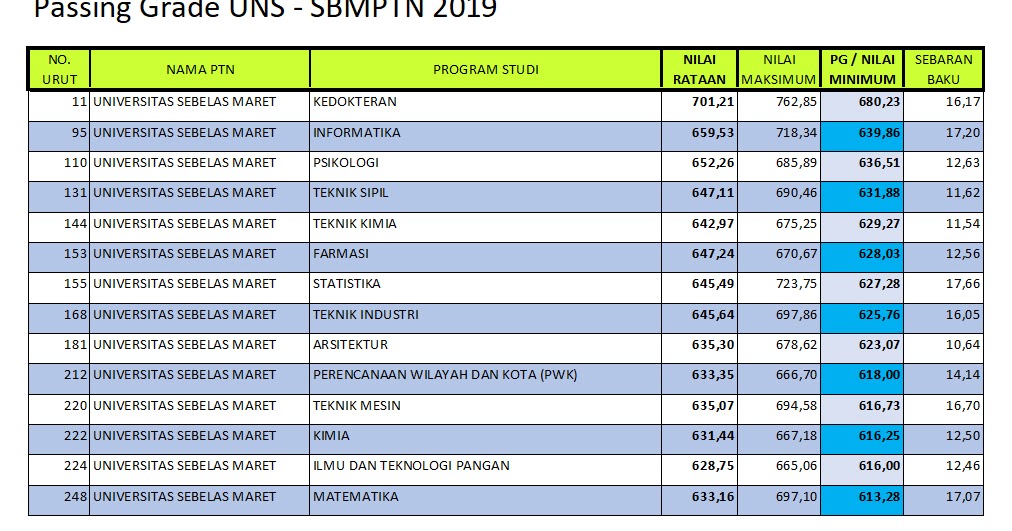 Info Sekolah Passing Grade Prodi Unggulan Uns Pada Sbmptn 2019