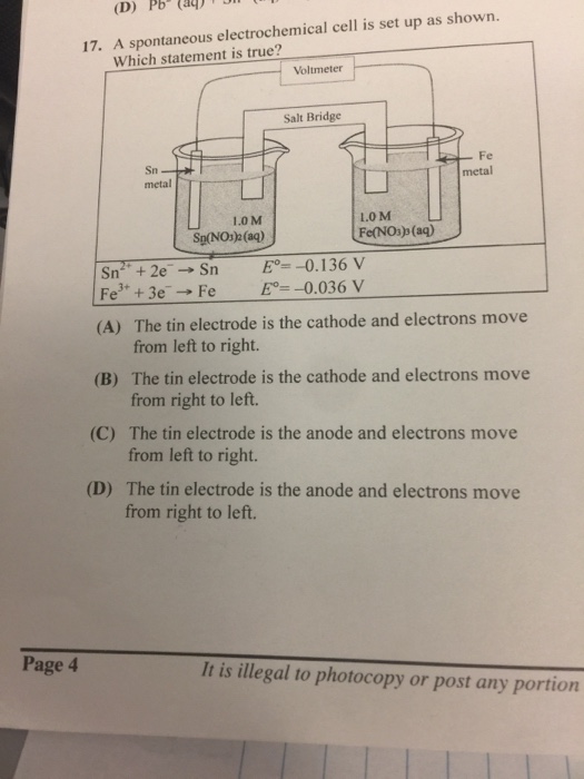 Solved D Pb 17 A Spontancous Electrochemical Cell Is Chegg Com
