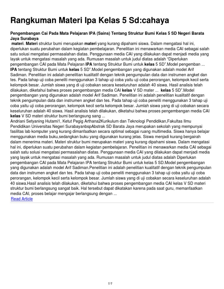 Rangkuman Materi Ipa Kelas 5 Sd Cahaya Pdf Document
