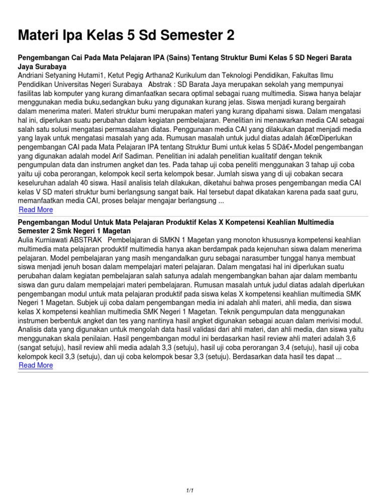 Materi Pelajaran Ipa Kelas 5 Sd Mi Semester 1 2