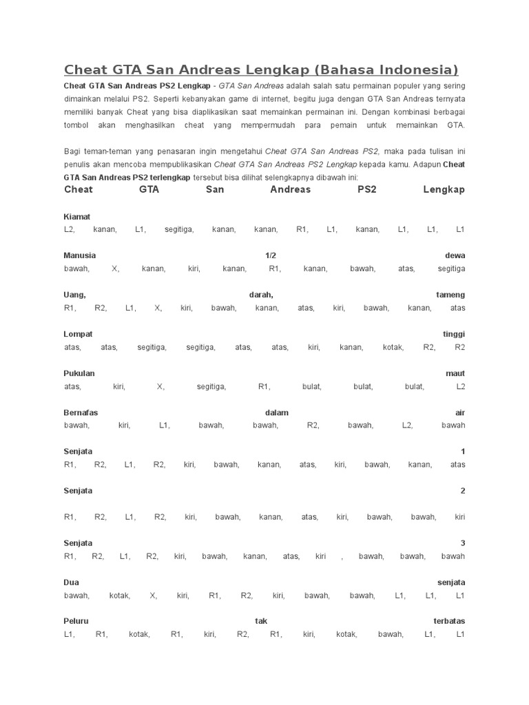 Cheat Gta San Andreas Sa Ps2 Terbaru Dan Terlengkap Cybers Inc