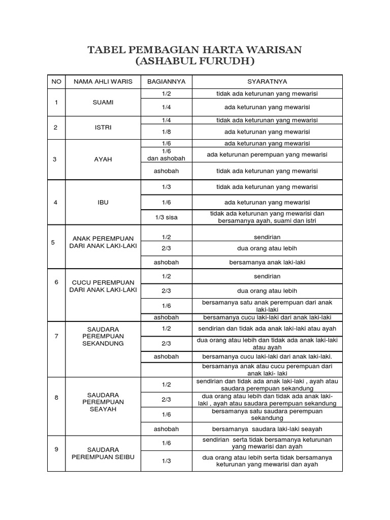 Tatacara Menghitung Harta Waris Dan Ketentuannya Plus Software Penghitung Harta Waris Aslibumiayu Net