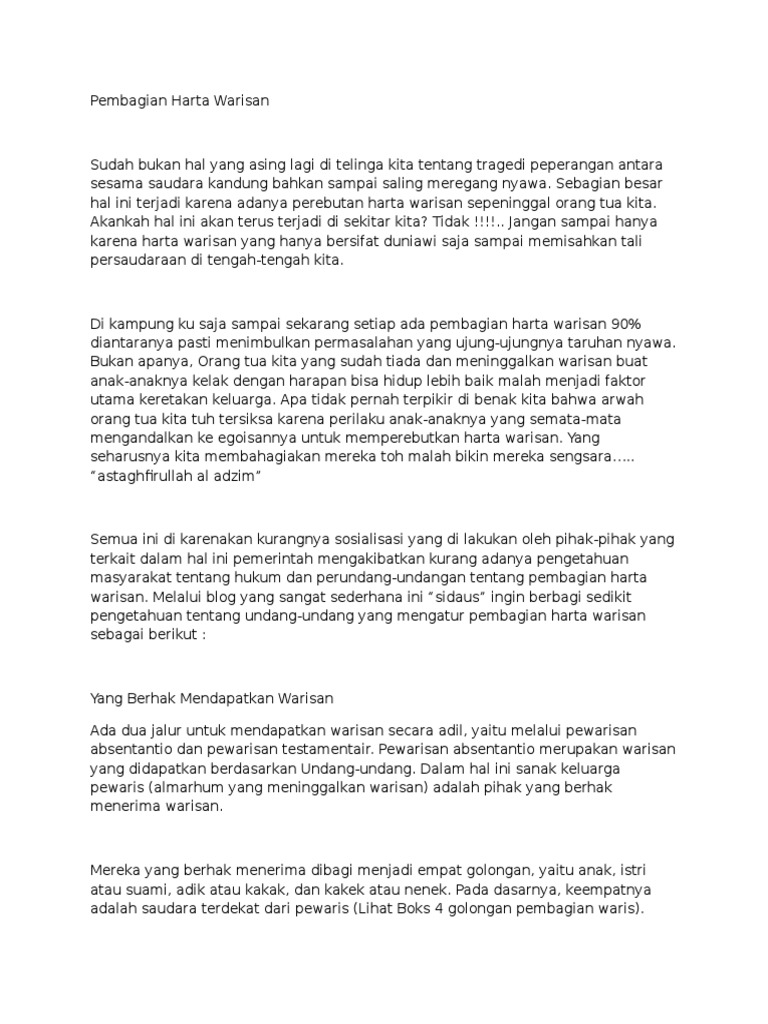 Warisan Jangan Jadi Rebutan Be A Wise Writer