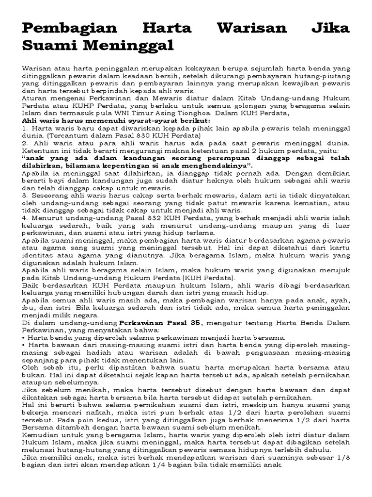 Hukum Pembagian Harta Waris Yang Berlaku Di Indonesia Perempuan Surat Wasiat Baki