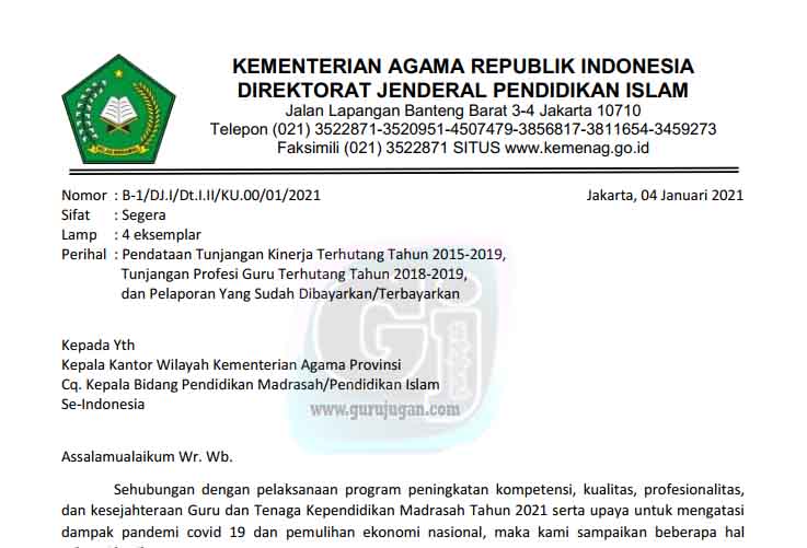 Surat Edaran Pendataan Tukin Dan Tpg Terhutang Guru Jugan