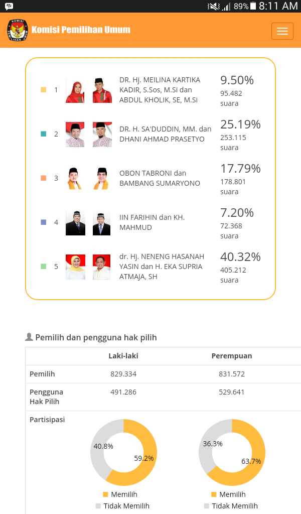 Real Count Pilkada Kab Bekasi Neneng 40 Ahmad Dhani 25 Obon 17 Living Cikarang