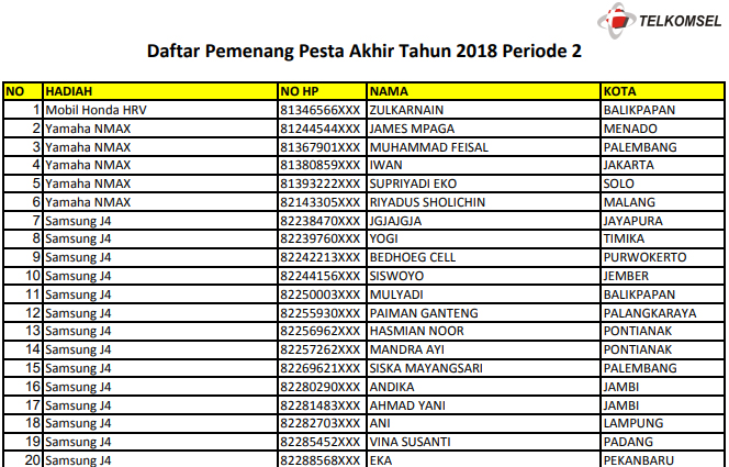 Daftar Nama Pemenang Undian Pesta Akhir Tahun 2018 Telkomsel Periode 2 Blog Om Jhon