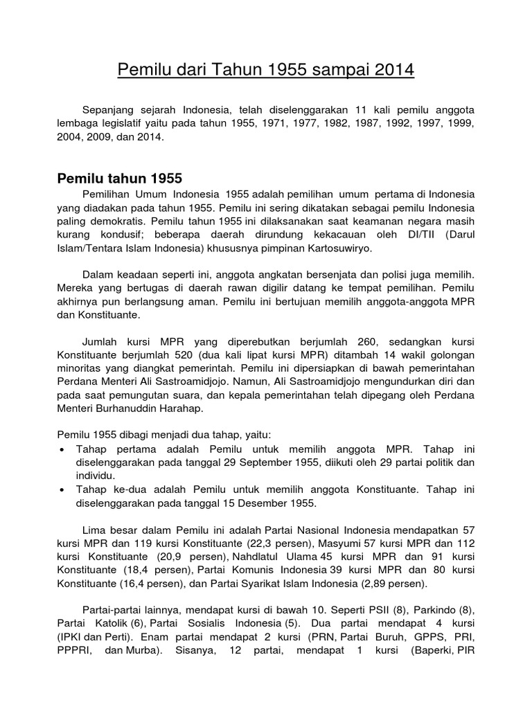 Pemilu Tahun 1955 Sistem Informasi Kearsipan Dinas Perpustakaan Dan Kearsipan Kabupaten Blora