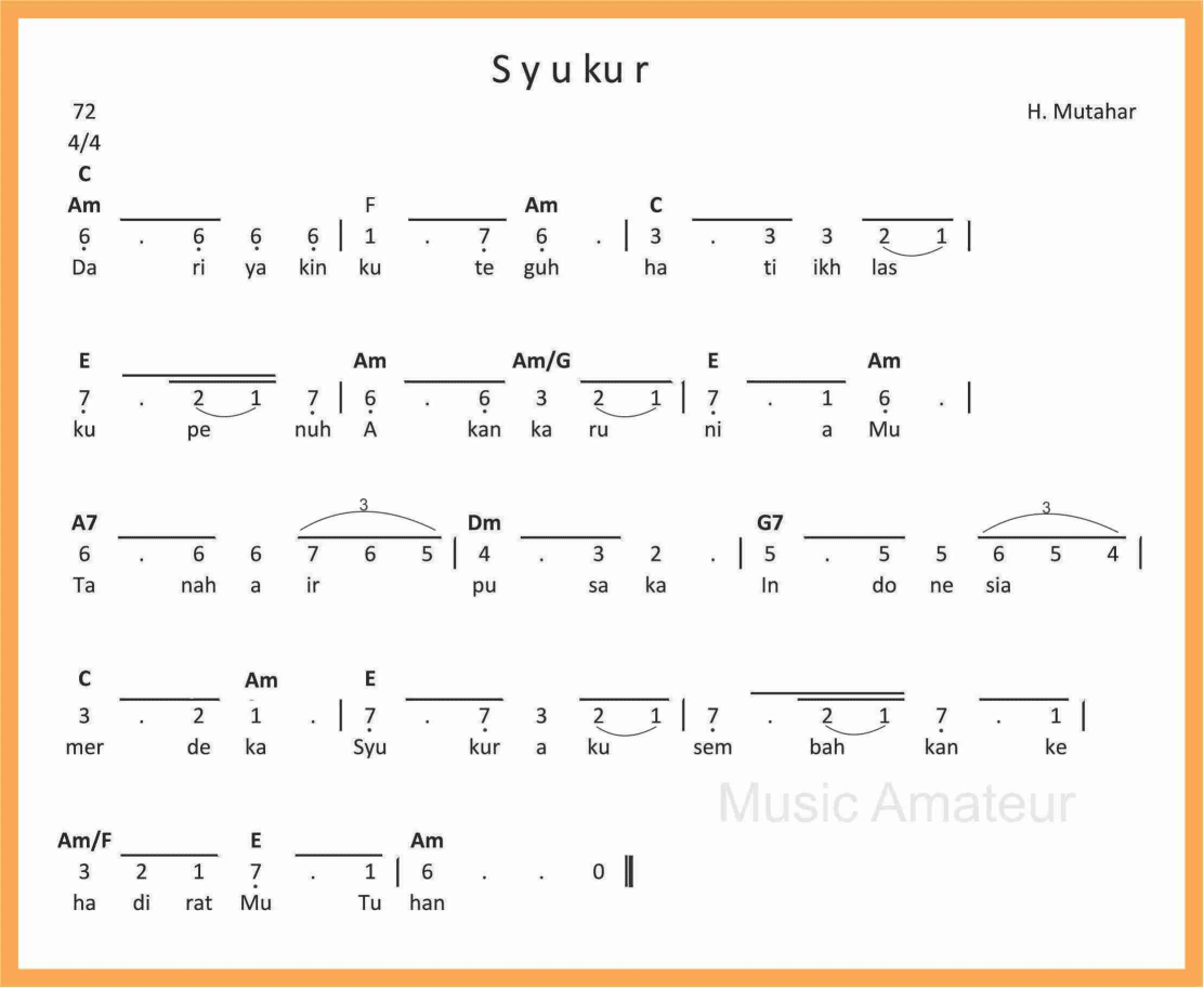 Not Angka Lagu Syukur Sekitar Musik