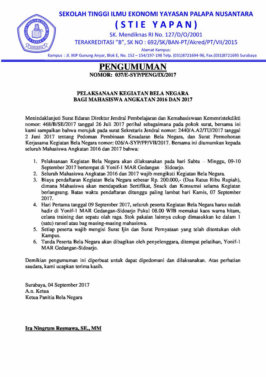 Stie Yapan Surabaya On Twitter Kegiatan Bela Negara Dilaksanakan Hari Sabtu Minggu 009 10 Sep 17 Pendaftaran Ke Resepsionis Fani Atau Dewi Https T Co 5mefvcwah5 Https T Co 2drctwwjkg