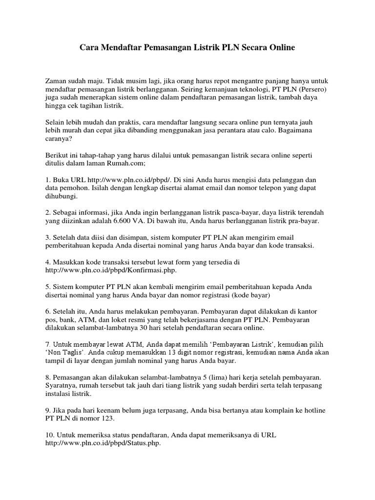Cara Daftar Pasang Baru Listrik Online Pln Publik