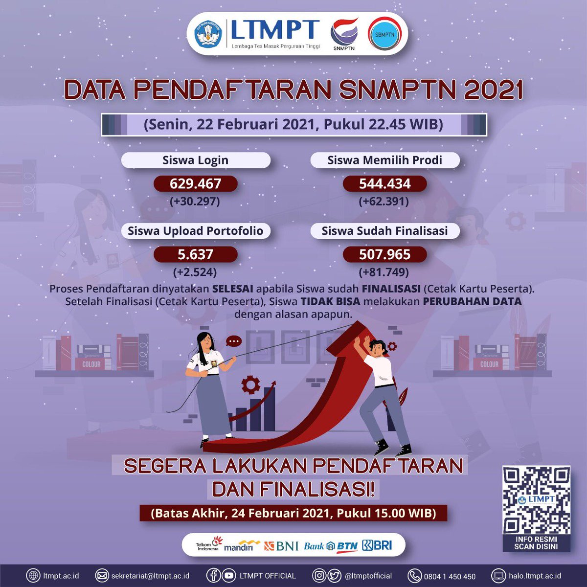 Ltmpt Official On Twitter Update Data Pendaftar Snmptn 2021 Senin 22 Februari 2021 22 45 Wib Imbauan Siswa Eligible Untuk Segera Melakukan Pendaftaran Dan Finalisasi Karena Pendaftaran Snmptn Akan Ditutup 24 Februari 2021