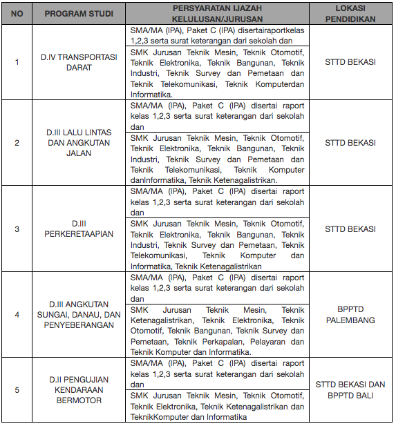 Penerimaan Calon Taruna Sttd Program D Iv 2019 2020 Dinas Perhubungan Aceh