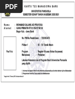 U Niv Ersitas Pa Ncasila Sipil Tekan Tombol Cetak Kartu Tes Yang Harus Dibawa Pada Saat Ujian Pdf Document