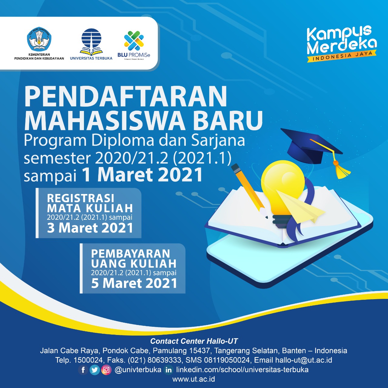 Universitas Terbuka No Twitter Selamat Sore Sahabat Ut Pendaftaran Mahasiswa Baru Program Sarjana Dan Diploma Ut Semester 2020 21 2 Diperpanjang Sampai 10 Februari 2021 Dan Registrasi Mata Kuliah Diperpanjang Sampai 1 Maret 2021