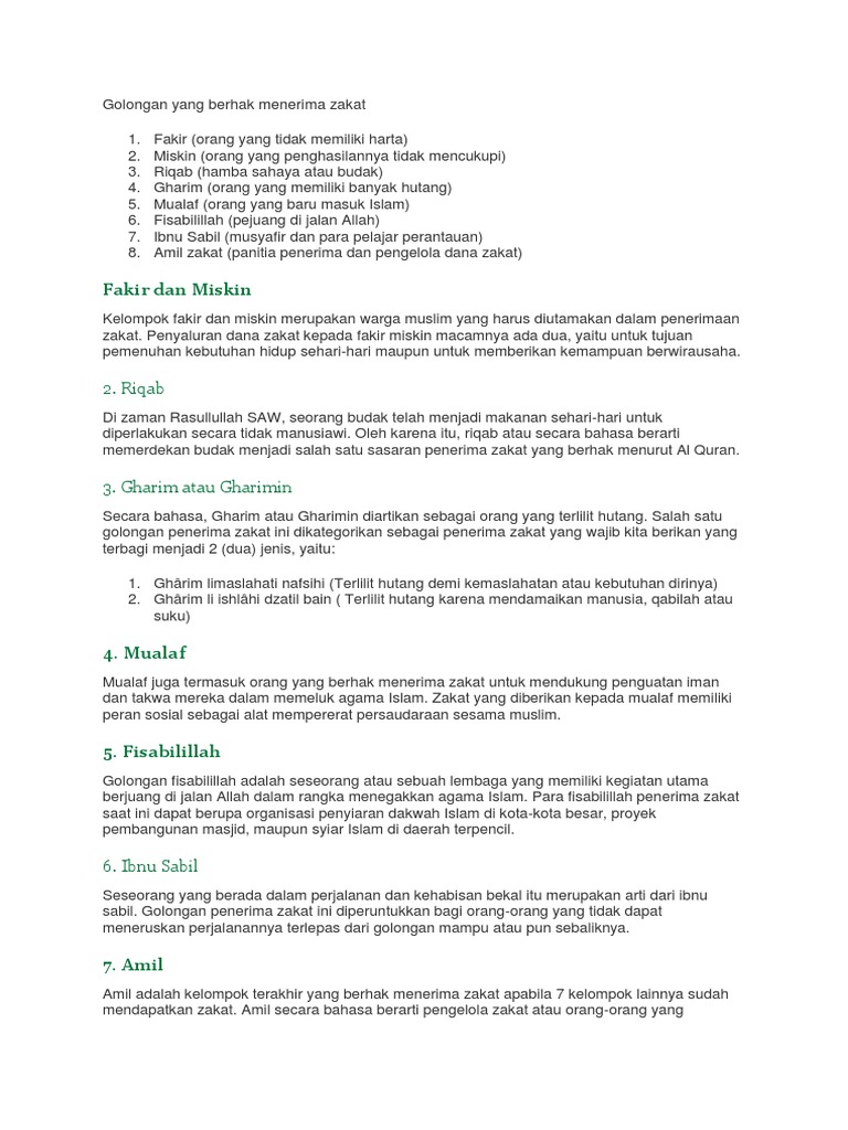 8 Golongan Yang Berhak Menerima Zakat Fitrah Indonesia Baik