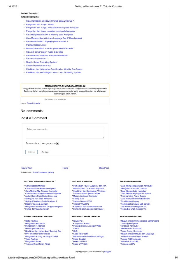 Setting Ad Hoc Windows 7 Tutorial Komputer