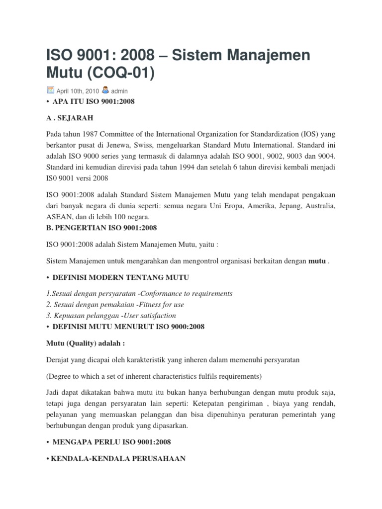 Sistem Manajemen Mutu Iso 9001 Referensi Standar