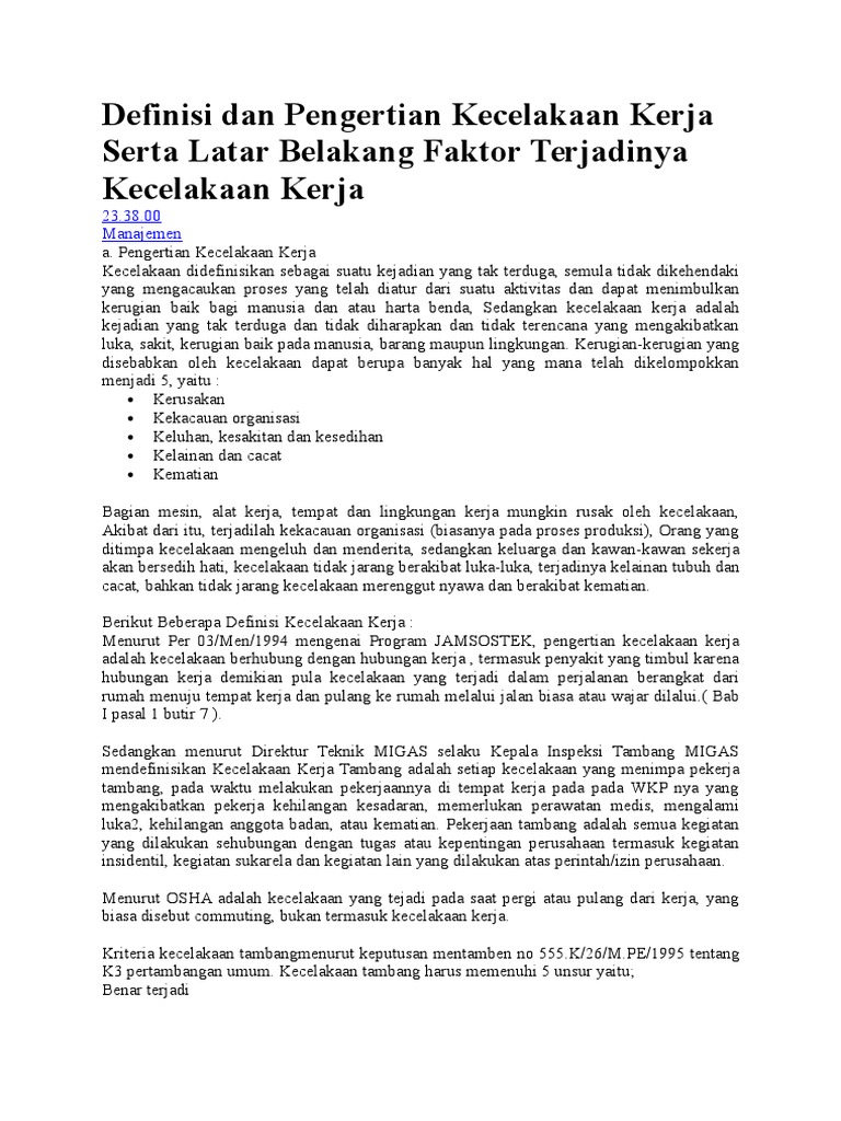 Definisi Dan Pengertian Kecelakaan Kerja Serta Latar Belakang Faktor Terjadinya Kecelakaan Kerja Definisi Dan Pengertian Menurut Ahli