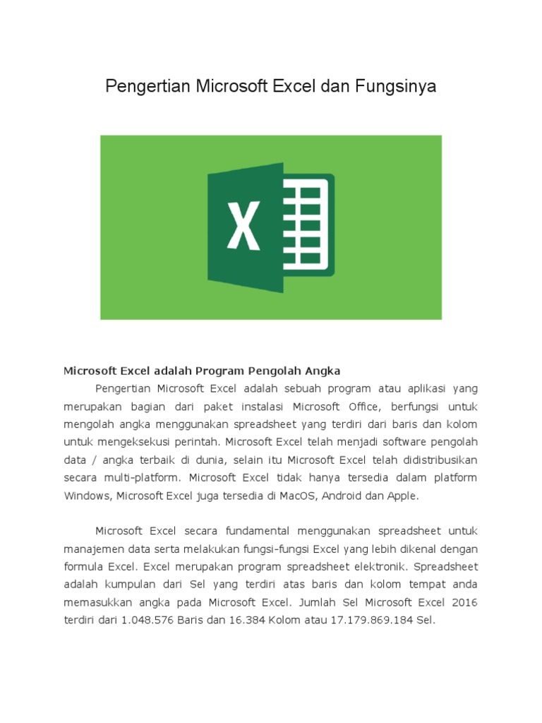 Pengertian Fungsi Dan Manfaat Microsoft Excel