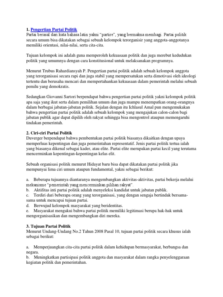 Pengertian Partai Politik Partai Politik Adalah Organisasi Politik Yang Menjalani Ideologi Tertentu Atau Dibentuk Dengan Tujuan Khusus Doc